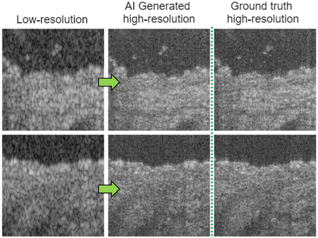 The optical resolution and imaging performance of endoscopic microscopy can be limited by size contraints of optical components. Neural networks can be trained to learn from high resolution images, to computationally enhance low resolution data.
